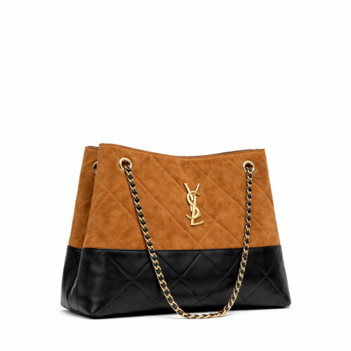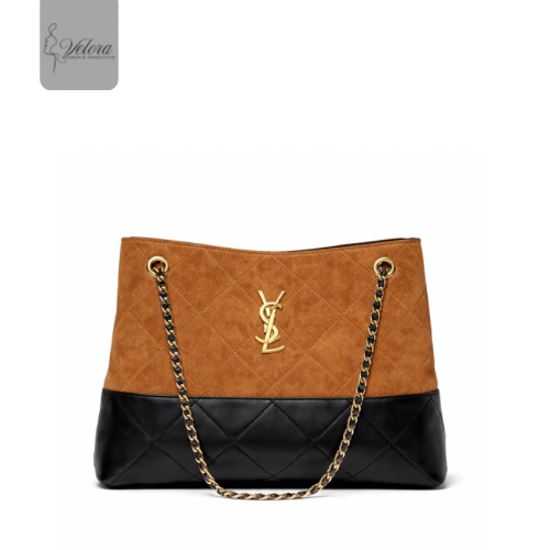 Large shoulder bag crafted from premium smooth leather. with elegant leather-threaded gold chain straps and finished with a polished gold-tone monogram logo
